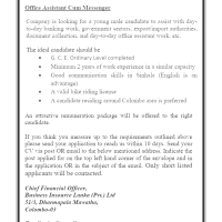 Company is looking for a young male candidate to assist with day- to-day banking work, government sectors, export/import authorities, document collection, and day-to-day office assistant work, etc.