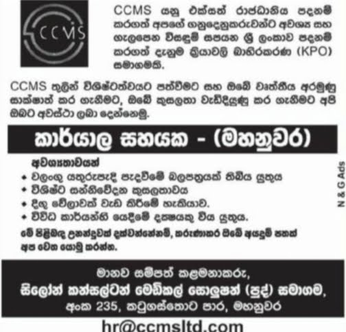 Human Resource Manager, Ceylon Consulton Medical Collusion (Pvt) Company, No. 235, Katugastota Road, Kandy