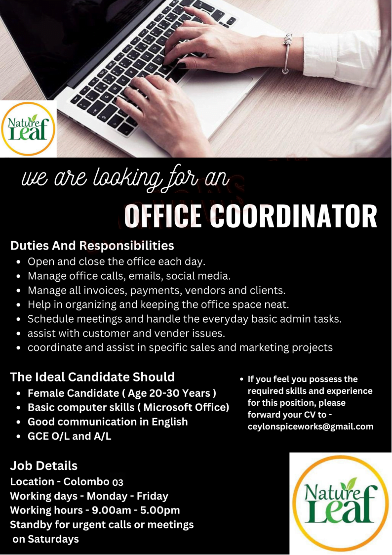 • If you feel you possess the required skills and experience for this position, please forward your CV to – ceylonspiceworks@gmail.com