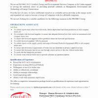 Please email your resumes to vijitha@prometsl.com with details of two non-related referees within 7 days.