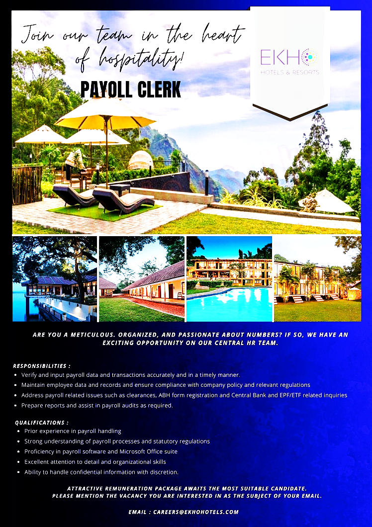 - Address payroll related issues such as clearances, ABH form registration and Central Bank and EPF/ETF related inquiries