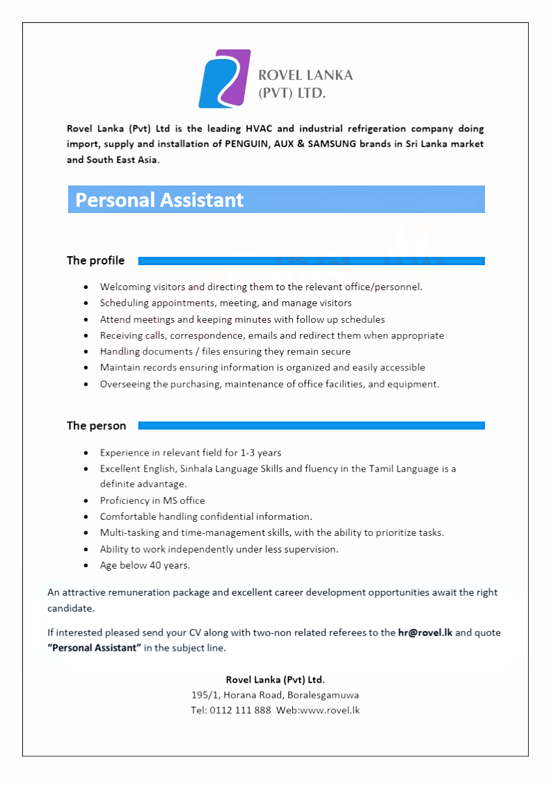 If interested pleased send your CV along with two-non related referees to the hr@rovel.lk and quote