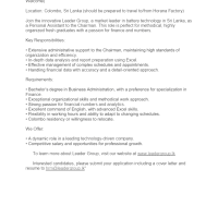 Interested candidates, please submit your application including a cover letter and resume to hrm@leadergroup.lk”