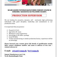 WE ARE LEADING FOOTWEAR MAUFACTURING COMPANY LOCATED IN GONAHENA-KADAWATHA HAS FOLLOWING VACANCY.