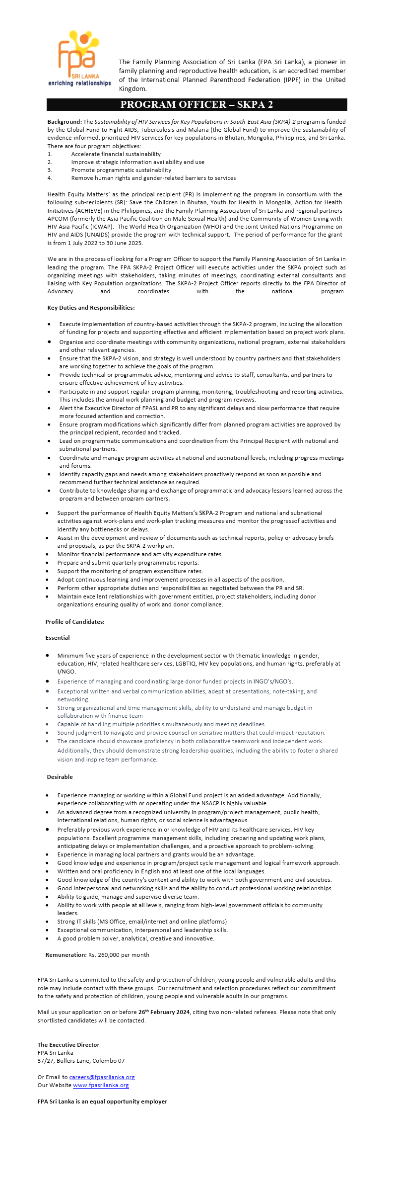 Or Email to careers@fpasrilanka.org