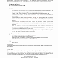 Minimum 03 years of experience in Recovery preferably in a Bank or Financial Institution.