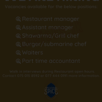 Restaurant Vacancies Accounting/Auditing/Finance, Hotels/Restaurants/Food/Bar/Spa Colombo February 2, 2024 Full Time Part Time UrgentApplication deadline closed. Job DescriptionRestaurant managerAssistant managerShawarma/Grill chefBurger/submarine chefWaitersPart time accountantWalk in interviews during Restaurant open hours.Contact 075 015 8592 or 077 444 0191 mnore information.Share this post Facebook Twitter LinkedIn Pinterest Photos Related Jobs FINANCE ASSOCIATE Featured Accounting/Auditing/Finance Sri Lanka Full Time Urgent Waiter Featured Hotels/Restaurants/Food/Bar/Spa Sri Lanka Full Time Urgent ACCOUNTANT |ACCOUNTANT |MAINTENANCE MANAGER & ELECTRICAL ENGINEER |SALES REPRESENTATIVE Featured Accounting/Auditing/Finance, Eng-Mech/Auto/Elec, Sales/Marketing/Merchandising Kurunegala Full Time Urgent Parliament of Sri Lanka vacancies Featured Accounting/Auditing/Finance, Customer Relations/Public Relations, Development, Hotels/Restaurants/Food/Bar/Spa, Office Admin/Secretary/Receptionist Sri Lanka Full Time Urgent