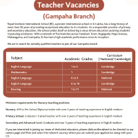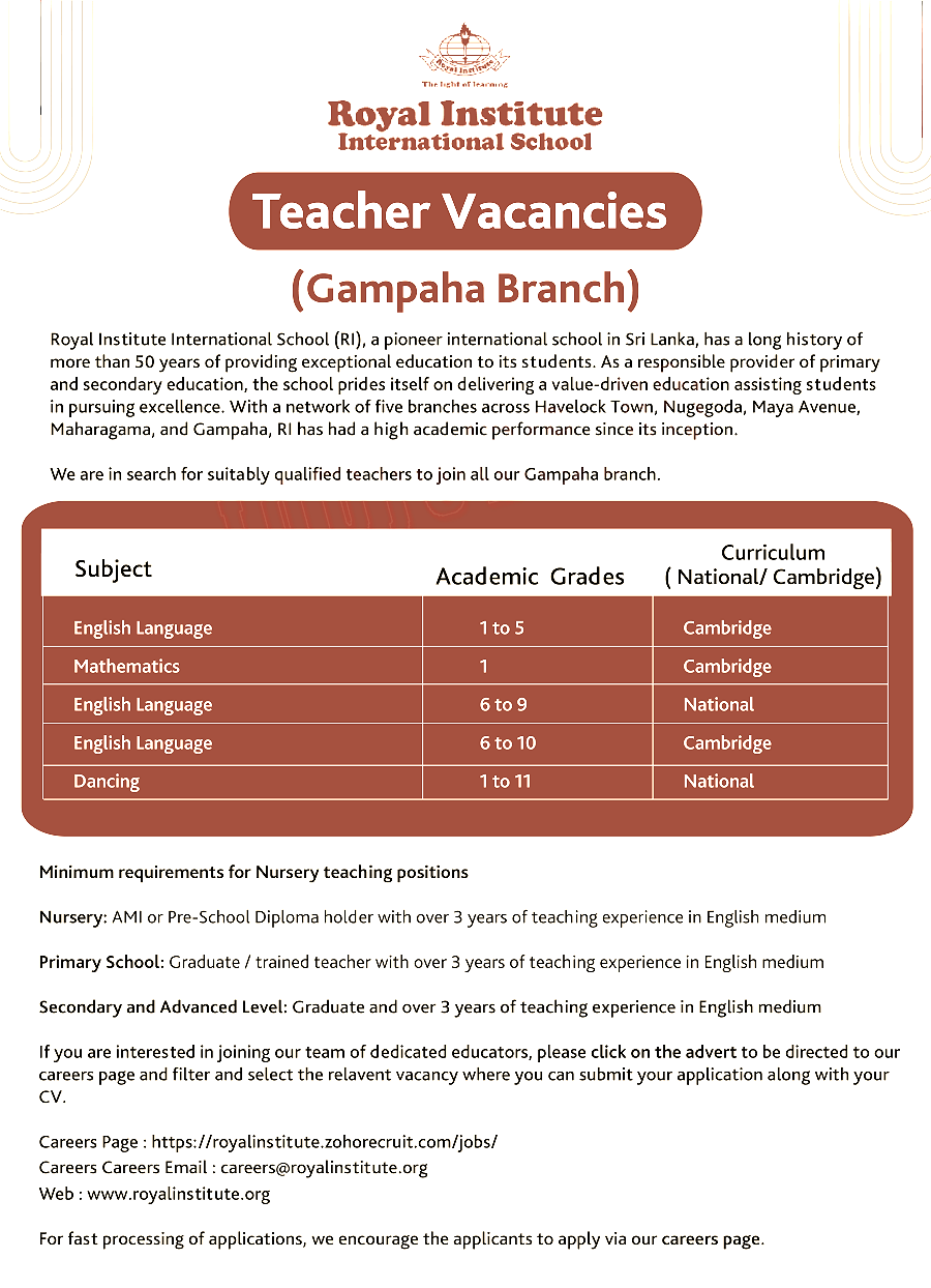 We are in search for suitably qualified teachers to join all our Gampaha branch.