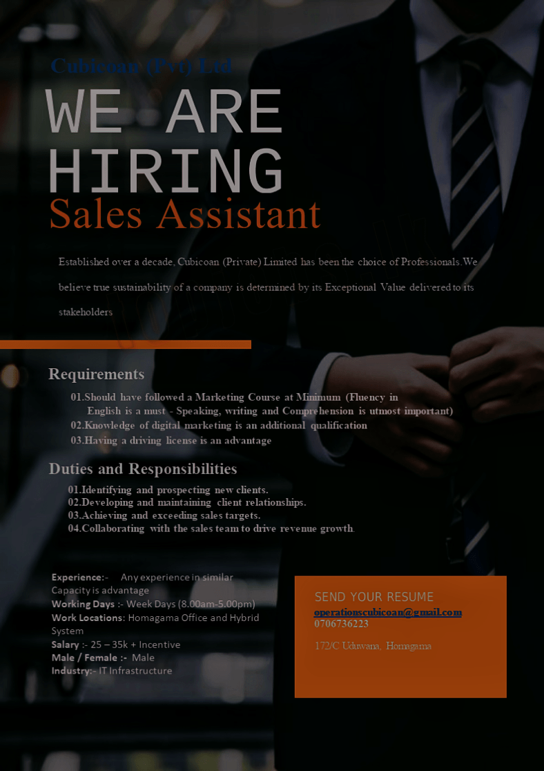 01.Should have followed a Marketing Course at Minimum (Fluency in English is a must-Speaking, writing and Comprehension is utmost important)