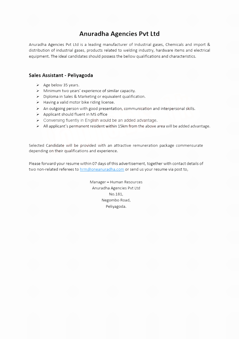 two non-related referees to hrm@oneanuradha.com or send us your resume via post to,