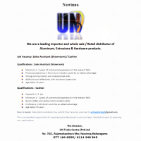 Job Vacancy: Sales Assistant (Showroom) / Cashier