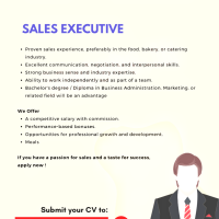 Proven sales experience, preferably in the food, bakery, or catering industry.