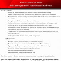 Sales Manager-Male- Hardware and Bathware