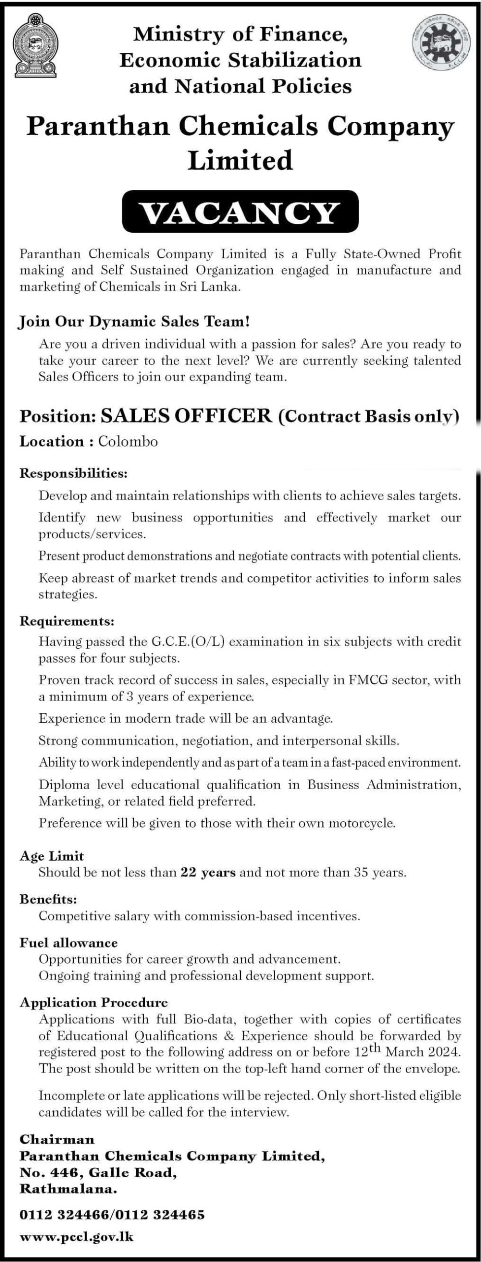 Position: SALES OFFICER (Contract Basis only)