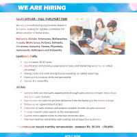 We are a manufacturing organization based in Sri Lanka, looking for suitable candidates for above position in below areas.