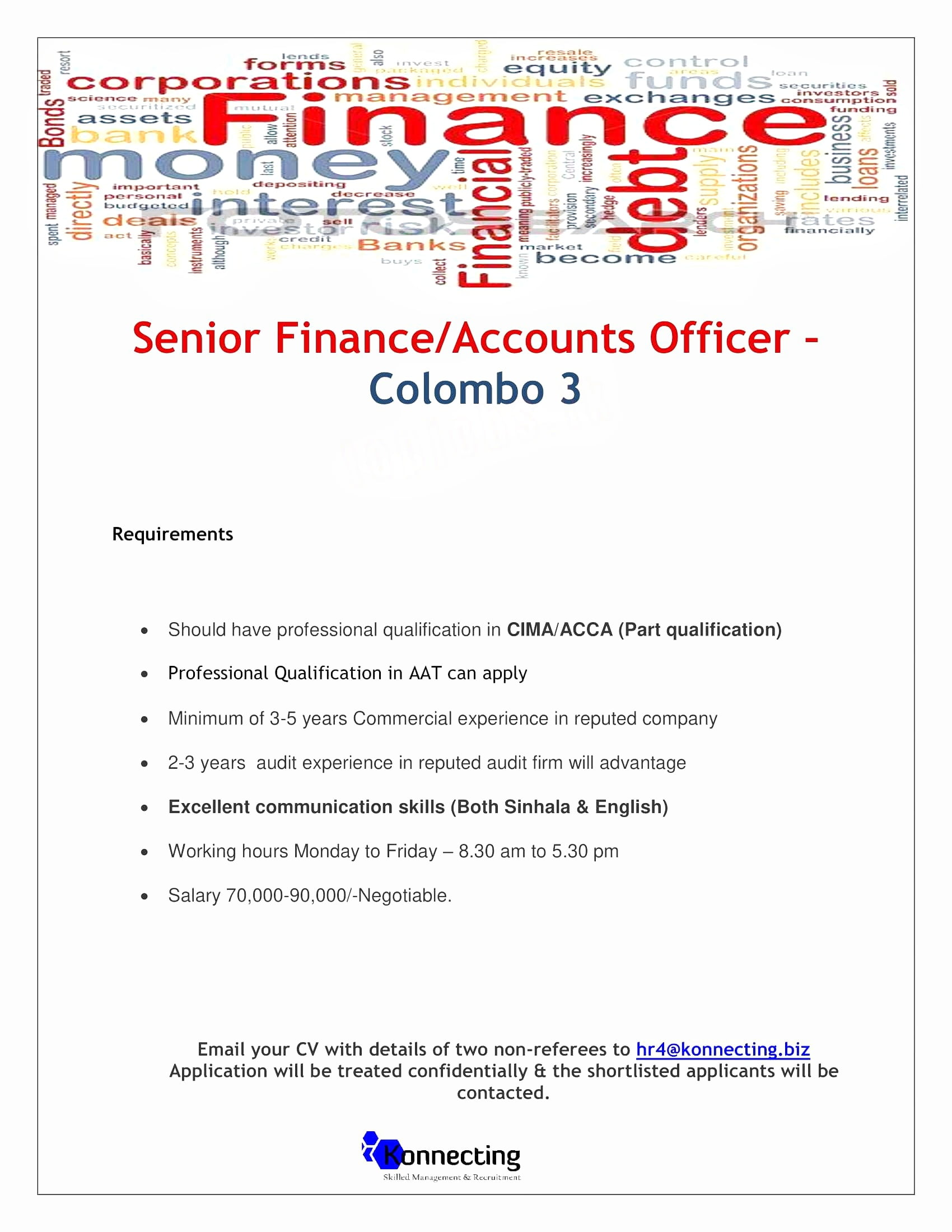 Email your CV with details of two non-referees to hr4@konnecting.biz