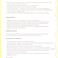 Responsibilities: - Maintain and elevate the restaurant’s high service standards.