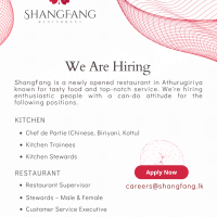 ShangFang is a newly opened restaurant in Athurugiriya known for tasty food and top-notch service. We’re hiring enthusiastic people with a can-do attitude for the following positions.