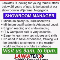 Lankatek is looking for young female staffs below 25 years of age, to be based at our showroom in Wijerama, Nugegoda.