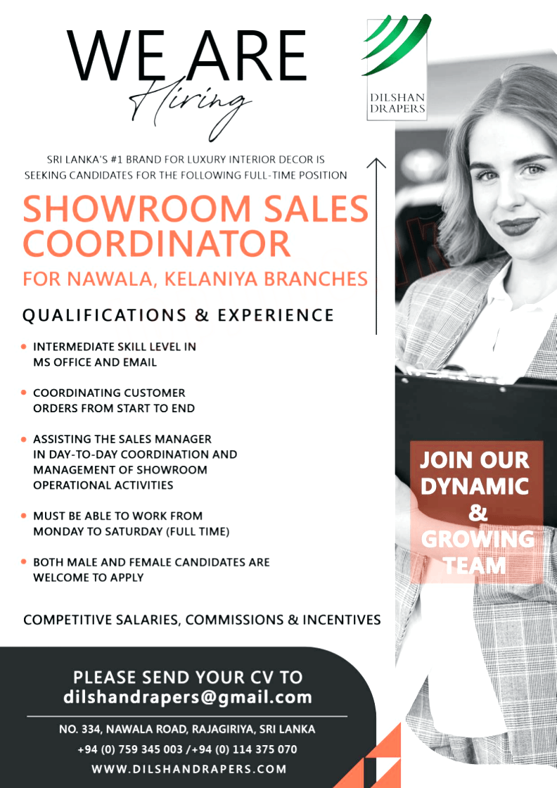 SHOWROOM SALES COORDINATOR FOR NAWALA, KELANIYA BRANCHES
