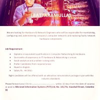 Please forward your CVs to vidushanki@gmail.com within 14 days from the date of vacancy or post to Micronet Information Systems (PVT) Ltd, No. 141/7A, Vauxhall Street, Colombo