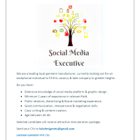 Public relations, Advertising & Brand marketing experience. - Good communication, interpersonal & negotiation skills.