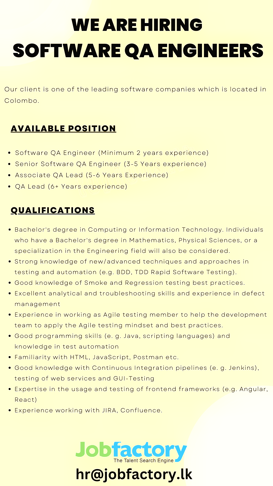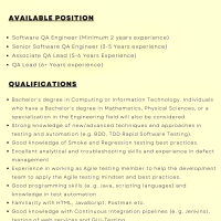 - Software QA Engineer (Minimum 2 years experience) • Senior Software QA Engineer (3-5 Years experience)