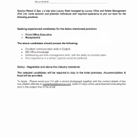 Sooriya Resort & Spa, a 4 star plus Luxury Hotel managed by Luxury Villas and Hotels Management (Pvt) Ltd, invite dynamic and potential individuals with required experience to join our team for the following positions;