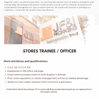 Good communication skills in both English & Sinhala - Prior work experience in stores management will be an added advantage
