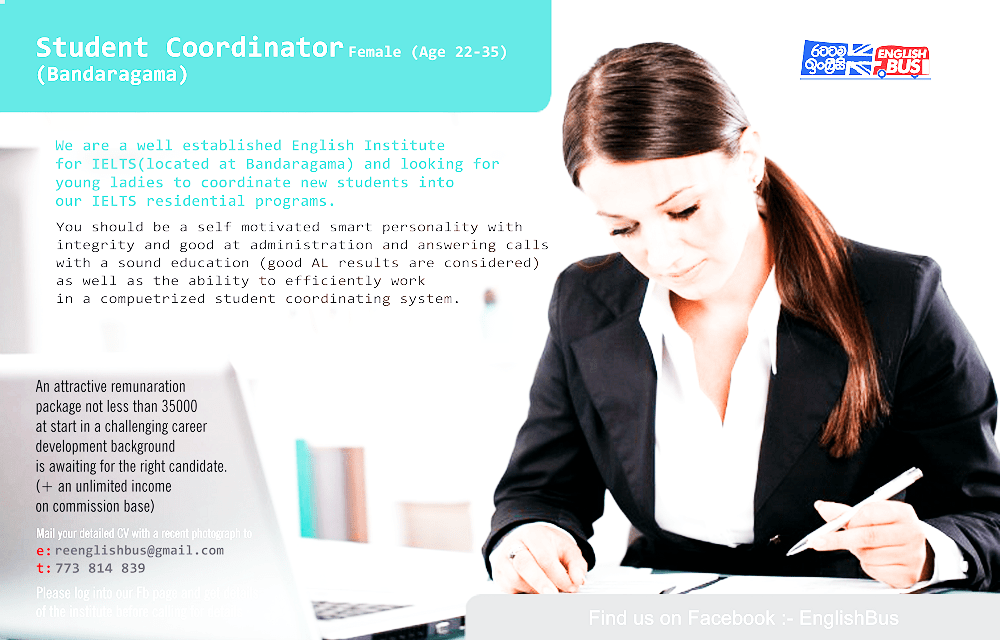 We are a well established English Institute for IELTS (located at Bandaragama) and looking for young ladies to coordinate new students into our IELTS residential programs.