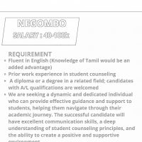 • Fluent in English (Knowledge of Tamil would be an added advantage)