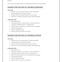 VACANCY FOR THE POST OF TECHNICAL ASSISTANT