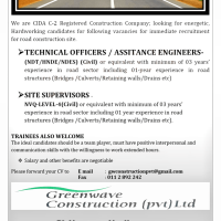 NVQ-LEVEL-4(Civil) or equivalent with minimum of 03 years’ experience in road sector including 01 year experience in road structures (Bridges /Culverts/Retaining walls/Drains etc).
