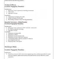 Qualifications: • Minimum 3 years’ experience in RCC and steel construction • Bsc. FIND in quantity surveying • Age below 30 years Capabilities : • Preparation of interim bills • Preparation of BOQ • Preparation of sub-contractor bills • Preparation of extra works and variations • Coordinating ability with the consultant or client Qs • Knowledge in Auto Cad • Preparing daily work reports