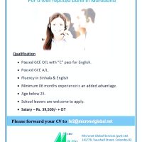 For a well reputed bank in Maradana