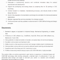 This position offers an exciting opportunity to gain hands-on experience in industrial design and CAD/CAM technology while working alongside a talented team of professionals If you are passionate about design and eager to kick-start your career in a dynamic and innovative environment, we encourage you to apply.