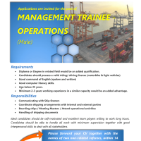 Applications are invited for the post of. MANAGEMENT TRAINEE OPERATIONS (Male)