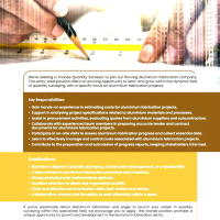 If you’re passionate about aluminium fabrication and eager to launch your career in quantity surveying within this specialized field, we encourage you to apply. This trainee position promises a unique opportunity for growth and development in the aluminium fabrication sector.