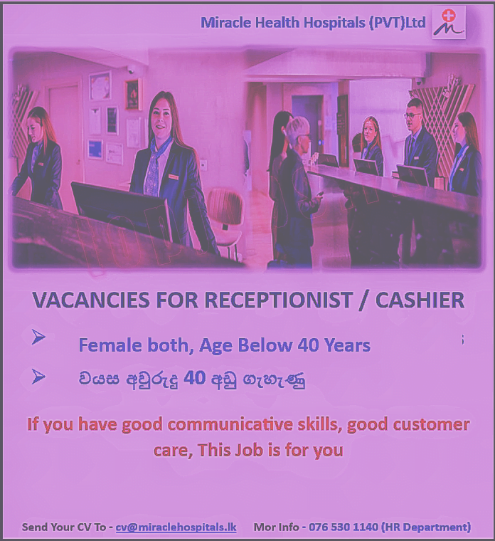 VACANCIES FOR RECEPTIONIST/ CASHIER